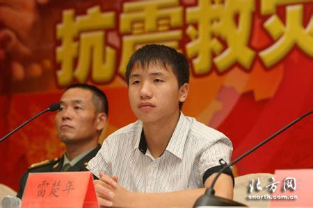 黃老師介紹,2008年6月,雷楚年成為全國37名抗震救災英模報告團的一員,他是代表團唯一的學生。雷楚年是未成年人,黃老師陪同。黃老師說,與他同在一個報告團的還有中央電視臺記者張泉靈和彭州市公安局民警蔣敏。黃老師說,雷楚年作報告很放得開,他的語言能力很強。不久,他又接到當奧運會火炬手的通知。