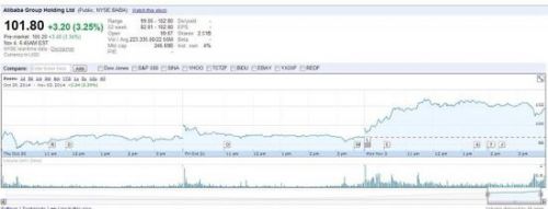 阿里巴巴集團在9月份通過創記錄的IPO募集到250億美元資金,IPO以來阿里巴巴股價的累計漲幅已達到45%。按照周一收盤價101.80美元計算,阿里巴巴的市值已達到2430億美元,超過了Facebook。