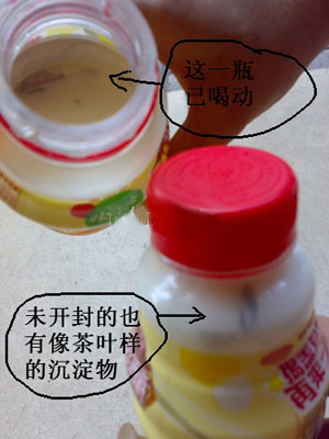今天上午,我從珠暉區(qū)出去辦事,經(jīng)過鐵路醫(yī)院時,在鐵路醫(yī)院斜對面的一家批發(fā)部花7元買了兩瓶500毫升裝黃色包裝的營養(yǎng)快線,當時在那家批發(fā)部老板找錢時打開一瓶就用吸管喝起來,當喝道大約三分之一時,吸管掉進了瓶內(nèi),我就到到瓶內(nèi)去看,卻發(fā)現(xiàn)瓶底有4——5塊像茶葉樣的黑色沉淀物!非常惡心,我當時就想吐。我又看那瓶沒開封的,發(fā)現(xiàn)里面也有一塊,我馬上找老板。老板倒是非常配合,馬上聯(lián)系衡陽代理商。具體的投訴流程及工作人員對于此事的回應態(tài)度在這里就不一一闡述了,反正就是很不配合,態(tài)度非常冷淡。
