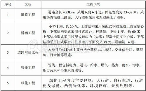 工程主要建設(shè)內(nèi)容一覽表