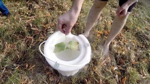 進行挑戰之前,科諾瓦洛夫曾從附近折下帶有樹葉的樹枝,并將其伸入液氮桶中,樹葉立即被凍結。用手碰觸后,這些冰凍樹葉立即碎裂成渣。(網頁截圖)