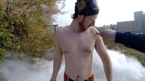 科諾瓦洛夫在進行液氮挑戰賽前曾說:“我相信物理、生物以及數學法則,我希望它們不要出錯。”為了確保他沒有凍僵,科諾瓦洛夫的朋友們立即上前檢查,看他的身體是否依然柔軟,而他本人則對著攝像頭微笑不止。