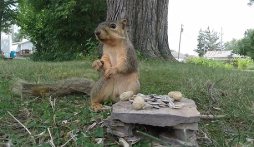 把相機放到野外,任由拍攝各種自然的生態行為,這是一種非常流行的做法,Youtube上一位用戶把花生和瓜子放好,吸引松鼠來吃,然后設置好相機拍攝,怎料松鼠把相機當作異性,還很愉快的地“侵占”了它。