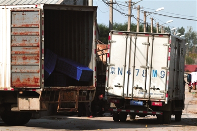 在“基地”外,停放著幾輛等待拉豆芽的廂式貨車。