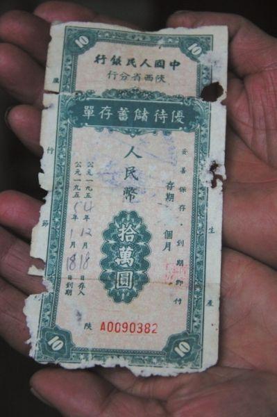 據了解,2012年,西安的王廣乾老人也遇到類似情況。他到銀行咨詢得知,他那張“上世紀50年代存入中國人民銀行陜西省分行,面值為10萬元”的存單,按照規定,只能兌換成現在的12.9元。